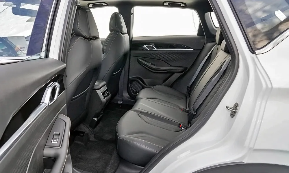 | Отделка интерьера и сидений экокожей чёрного цвета с контрастной строчкой красного цвета |